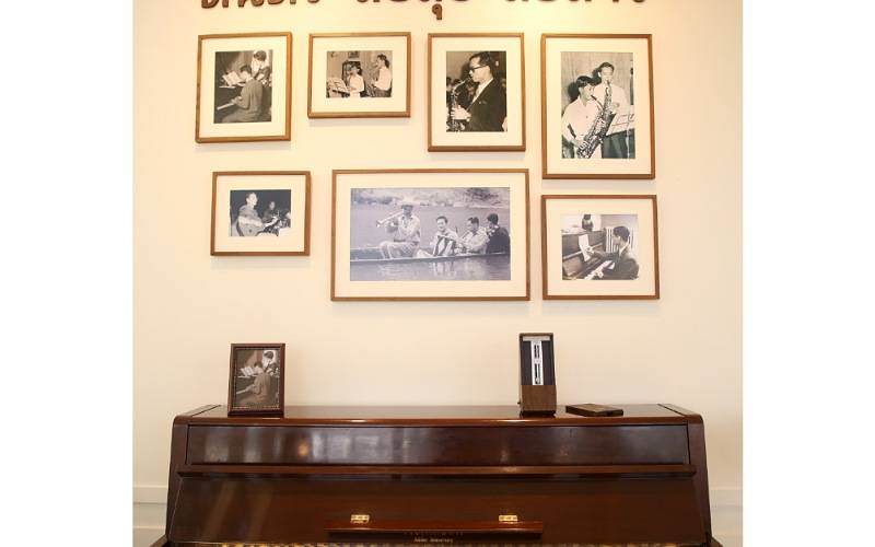โซนที่ 2 “ดนตรี สื่อสุข สื่อสาร” นำเสนอพระปรีชาสามารถทางด้านดนตรีของในหลวงรัชกาลที่ 9 ในรูปแบบห้องดนตรี โดยจัดเป็น มุมเปียโน มุมโทรทัศน์ และ มุมแผ่นเสียง ซึ่งแต่ละมุมดนตรีจะแสดงผลงานทางดนตรีของพระองค์ผลัดเปลี่ยนหมุนเวียนกันไปตลอดทั้งวัน นอกจากนี้ ยังจัดแสดงภาพขณะทรงดนตรีในหลากหลายพระอิริยาบถ ซึ่งแสดงให้เห็นว่าดนตรีกลายเป็นสื่อกลางในการสื่อสารระหว่างประชาชนกับพระองค์ รวมถึงการเชื่อมร้อยสัมพันธไมตรีระหว่างมิตรประเทศด้วย