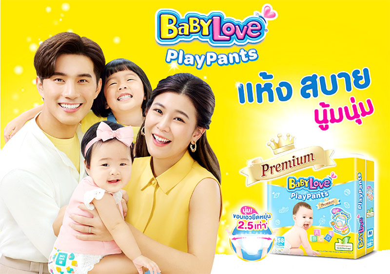 โดยครั้งนี้ เบบี้เลิฟ ได้เปิดตัวผ้าอ้อมนวัตกรรมเยี่ยม พร้อมตอกย้ำกลยุทธ์สนับสนุนการช่วยกันเลี้ยงลูก สู่การตีโจทย์ความเข้าใจความต้องการและสัมผัสที่แตกต่างของพ่อและแม่ว่ามีผลต่อพัฒนาการของลูกน้อยที่แตกต่างกันและส่งผลต่อความฉลาดทางอารมณ์ที่ดีเยี่ยม พร้อมเปิดตัวพรีเซ็นเตอร์ครอบครัวอารมณ์ดีหนุ่ม “บี้-ธรรศภาคย์” และสาว “กุ๊บกิ๊บ-สุมณทิพย์” ที่ครั้งนี้ยกขบวนหอบความน่ารักของลูกสาวทั้งสอง “เป่าเปา” และ “เป่าเป้ย์” รับบทเป็นพรีเซ็นเตอร์คนใหม่วัยกระเตาะของผ้าอ้อมเบบี้เลิฟ เพลย์แพ้นท์ พรีเมี่ยม