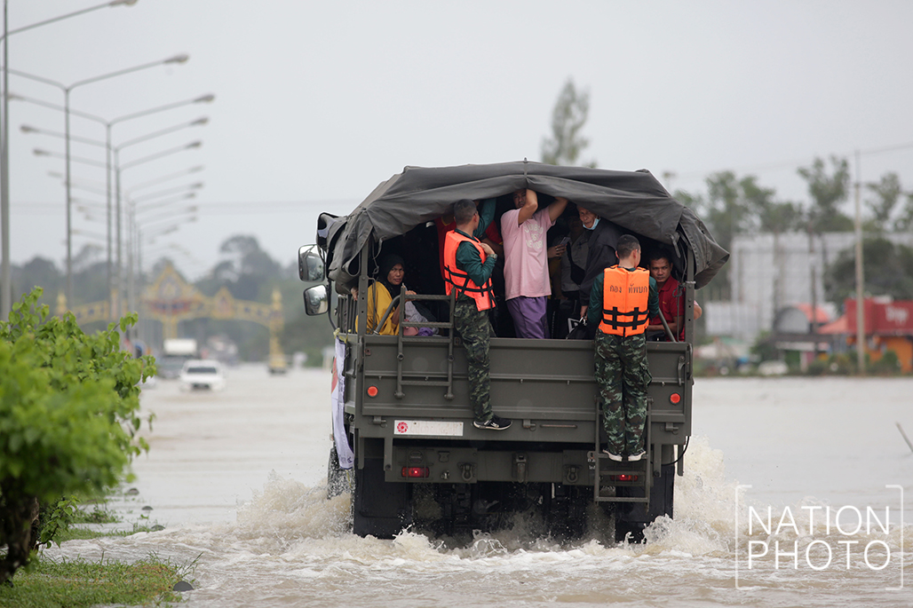 Meanwhile, 4th Army Area troops deployed trucks to provide transport for passengers at Nakhon Si Thammarat Airport, where flooding has blocked entry for cars.