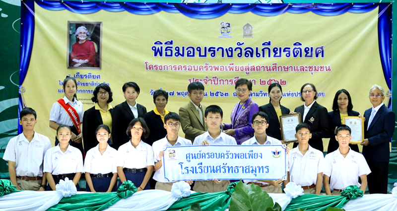 ภายใต้ชื่อ “ศูนย์ครอบครัวพอเพียง” ให้มีจิตอาสา น้อมนำหลักปรัชญาเศรษฐกิจพอเพียงมาปฏิบัติอย่างเข้าใจและยั่งยืน โดยมี ดร.คุณหญิงกัลยา โสภณพนิช รัฐมนตรีช่วยว่าการกระทรวงศึกษาธิการ เป็นประธานในพิธี ณ ห้องประชุมอเนกประสงค์ อิสลามวิทยาลัยแห่งประเทศไทย โดยในปีนี้ได้มีการมอบรางวัลกว่า 479 รางวัล จากการคัดเลือกคณาจารย์และเยาวชนครอบครัวพอเพียงจำนวน 500 คนจาก 152 สถานศึกษา ทั้งนี้ โครงการได้จัดมอบ “รางวัลเกียรติยศ” ในสาขาต่างๆอาทิ รางวัลผู้บริหารสถานศึกษาตามศาสตร์ของพระราชาเป็นเลิศ, รางวัลครูดีศรีแผ่นดิน, รางวัลศูนย์ครอบครัวพอเพียงดีเด่น และ รางวัล Volunteer star แก่นักเรียน นักศึกษาเป็นต้น