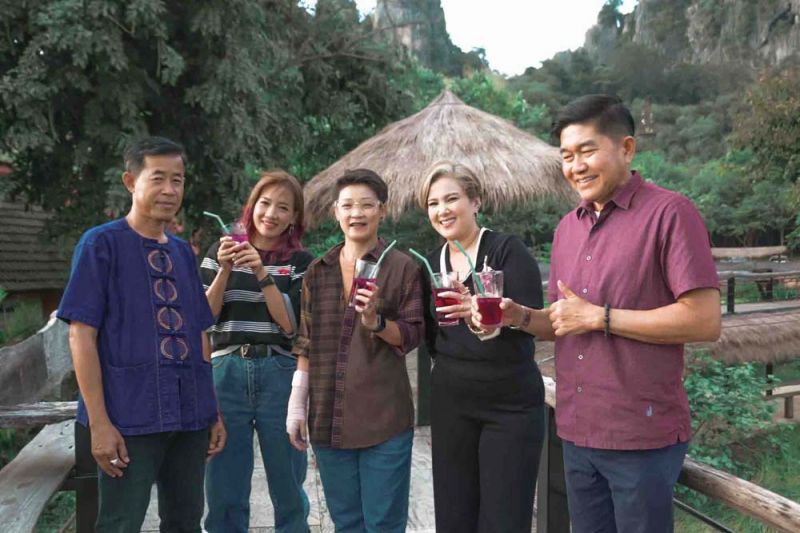 จากนั้นเที่ยวต่อภายใน ชุมชนบ้านพรสวรรค์ ดูวิธีการเลี้ยงหนอนไหมตั้งแต่ต้นจนจบ งานนี้ทำเอาคุณน้ำผึ้งยืนไม่ติด โดนลักกี้-ยมมี่แกล้งเข้าให้ จนถึงขั้นน้ำตาร่วงเลยทีเดียว.. !! แต่ถ้าเรื่องช็อปขอให้บอก เพราะ She จะสู้ไม่ถอย ขอเลือกซื้อสินค้าชุมชนไปหลายชิ้น พิกัดสุดท้ายกับเวลาพระอาทิตย์ใกล้ตกดิน ชวนกันมาจิบชาฝาง นั่งรับลม ชมค้างคาว แช่เท้าสมุนไพร ที่สถานีเขาฉกรรจ์ ทำเอาแต่ละคนถึงกับตื่นเต้น และลุ้นไปกับฝูงค้างคาว
