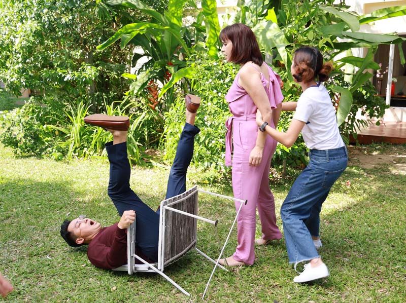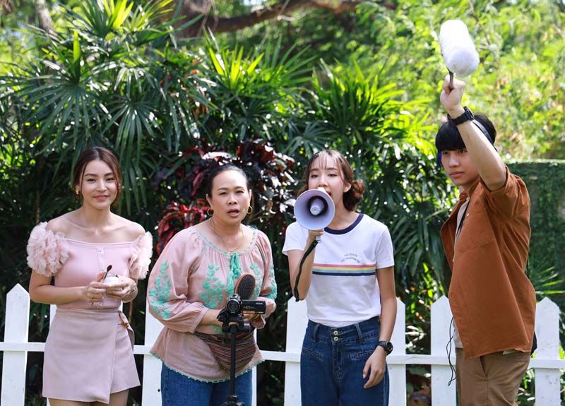 วันนี้เดอะแก๊งเฮฮาปาร์ตี้มีแต่เสียงหัวเราะเพราะได้เข้าฉากกันครบทีม ผู้กำกับปลา-พีรพล ก็สนุกบรีฟรายละเอียดกับนักแสดงหน้าเซตแฮปปี้ บอกย้ำๆ ว่าฉากนี้