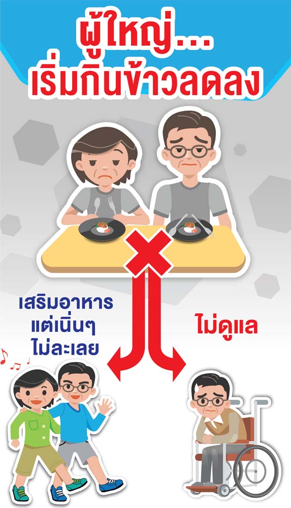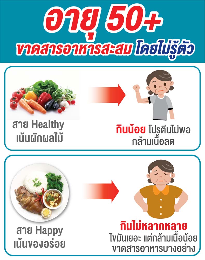 ประเทศไทยกำลังนับถอยหลังสู่สังคมสูงวัยอย่างสมบูรณ์ โดยในปี 2564 เราจะมีประชากรผู้สูงอายุมากถึงร้อยละ 20 ของประเทศ ดังนั้นการดูแลสุขภาพของผู้สูงอายุจึงเป็นเรื่องที่ใกล้ตัวเข้ามาทุกขณะ โดยเฉพาะความเสี่ยงต่อภาวะมวลกล้ามเนื้อน้อย ช่วยเหลือตัวเองไม่ได้และอาจเป็นภาระลูกหลานในที่สุด การสร้างความเข้าใจด้านโภชนาการและเสริมสารอาหารให้เพียงพอถือเป็นก้าวสำคัญในการเดินหน้าสู่สังคมสูงวัยที่แข็งแรงและมีคุณภาพ