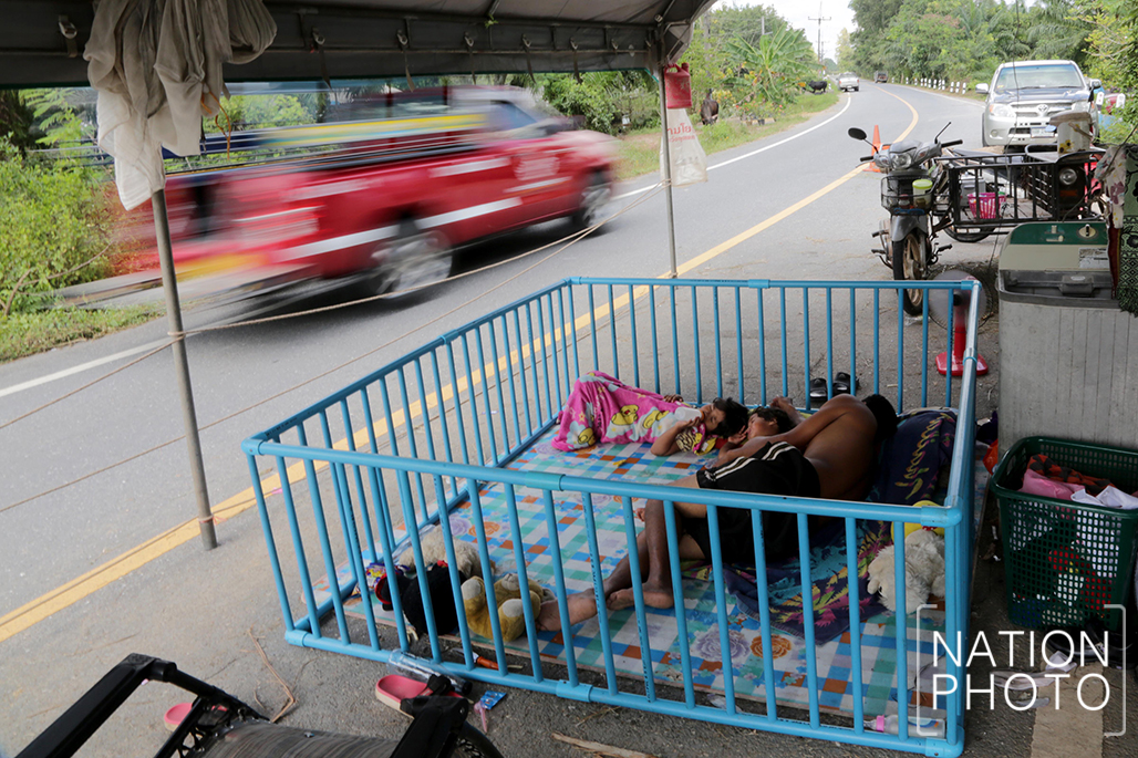 Even though floods in Nakhon Si Thammarat province are receding, many residents are still not able to return home and are having to find shelter alongside roads.