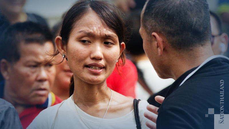 Prominent protester Chonthicha Jangrew was intimidated by royalists in a restaurant and had to call the police.On Sunday, the protester posted on her Facebook page that a group of royalists had threatened her and her friends while they were having dinner in a restaurant.Chonthicha said that the royalists left their table and approached her and her friends.“They shouted obscenities, and also forced me to leave the restaurant with them,” she added.She confessed that the situation shocked her. However, she was conscious enough to call the deputy commissioner of Chanasongkram Police Station, asking for assistance.Police arrived quickly at the restaurant and calmed the situation down.Chonticha added that the intimidators did not apologise for their behaviour, so the protesters later filed a case at the police station.Suuming up her post, Chonticha said that it was acceptable to cheer different political sides, but “do not claim loyalty for the monarchy as a permission to start a brawl with other people”.