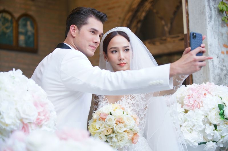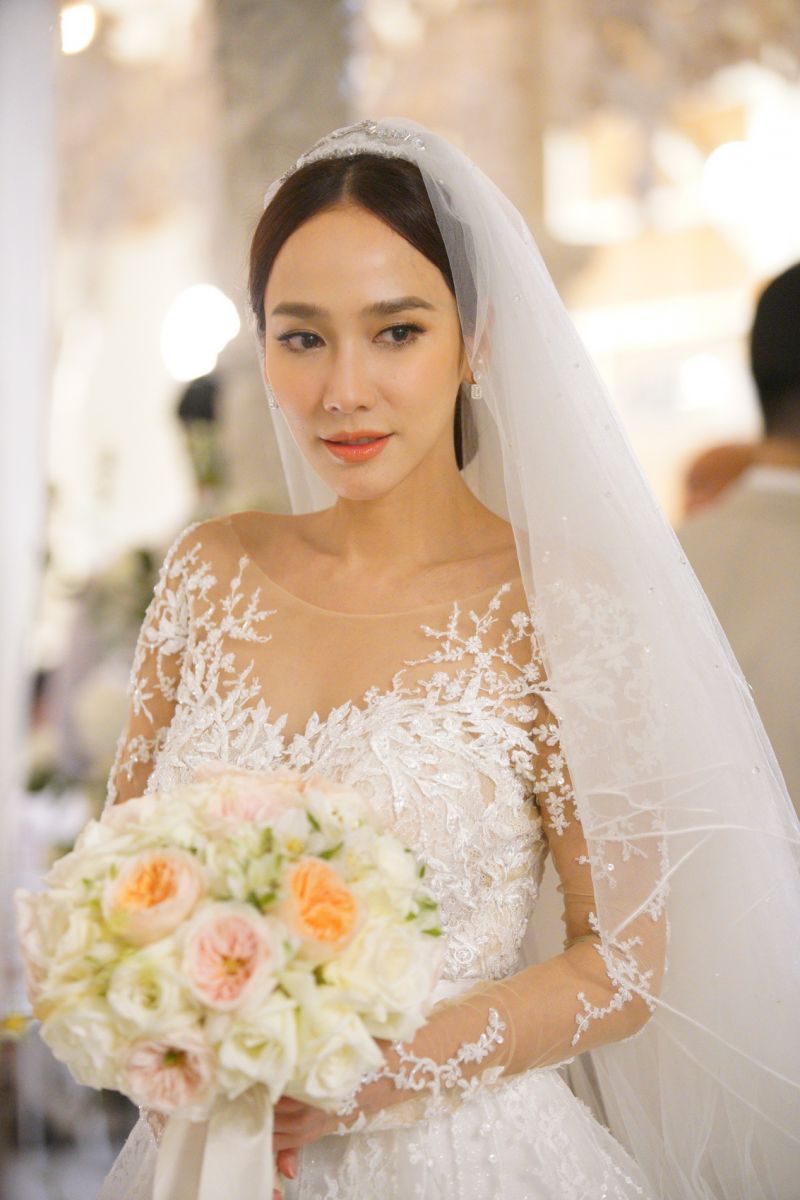สวย สง่า สมนางพญา ซุปตาร์ ‘อั้ม พัชราภา’ ในลุคเจ้าสาว ควงเจ้าบ่าว ‘มิกซ์ ทองระย้า’
