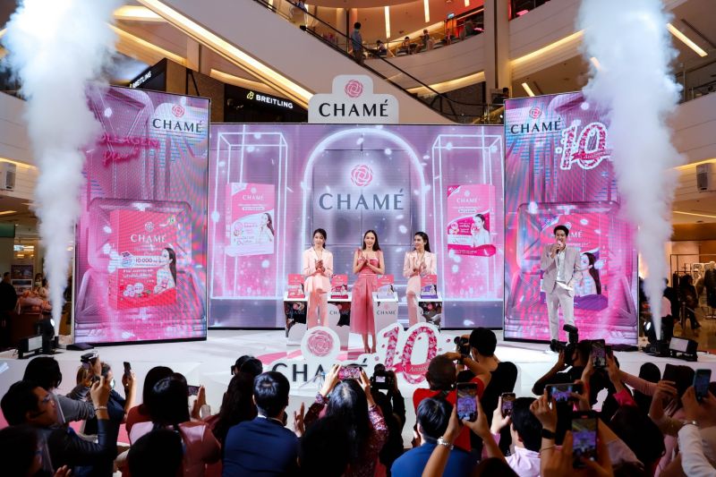 โดยบรรยากาศภายในงานเปิดตัว‘ชาเม่คอลลาเจนพลัส 4 สูตร’ ที่ชั้น 1 แฟชั่นฮอลล์ สยามพารากอนมีเหล่า เซเลป คนดัง มาร่วมงานกันอย่างคึกคัก อาทิ ‘ดอม เหตระกูล’,‘บิ๊ก เบญจรงคกุล’,‘เนท My Mate Nate ’ ยูทูเบอร์คนดัง พร้อมทั้ง ‘อายตา’,‘แอริกะ’บล็อกเกอร์ชื่อดังและอีกหลายคนมาร่วมงานพร้อมทั้งเหล่าพันธมิตรทางธุรกิจ ต่างมาร่วมเป็นเกียรติแสดงความยินดีกับชาเม่ 10 ปีกันอย่างพร้อมเพียง ธีมงานเนรมิตเป็นแล็ปทดลองทันสมัย ซึ่งมีแล็ปทดสอบคุณภาพ ดวงตา,ผม,ผิวพรรณ อย่างมีมาตรฐาน พร้อมโดมจุดแลนด์มาร์คสร้างความตื่นตาตื่นใจให้กับผู้ที่ได้มาร่วมงาน