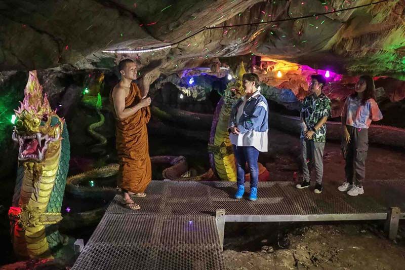 ยังอยู่กันที่ จ.สระแก้ว คราวนี้“คุณน้ำผึ้ง-ลักกี้-ยมมี่” พาเที่ยวสายมูที่วัดเขาสิงโต มาทีเดียวได้เที่ยวถึง 4 สาย เริ่มจากสายธรรม เข้าวัดทำบุญไหว้พระ และต่อที่สายญาณและสายศิลป์ กับการเข้าถ้ำวังนาคา แค่หน้าปากถ้ำก็อลังการแล้ว ภายในถ้ำยิ่งตะลึงไปอีก เพราะมีรูปปั้นพญานาคมากมาย ซึ่งเจ้าอาวาสวัดเป็นผู้ปั้นเองโดยลักษณะของแต่ละตนก็มาจากนิมิตอีกด้วย