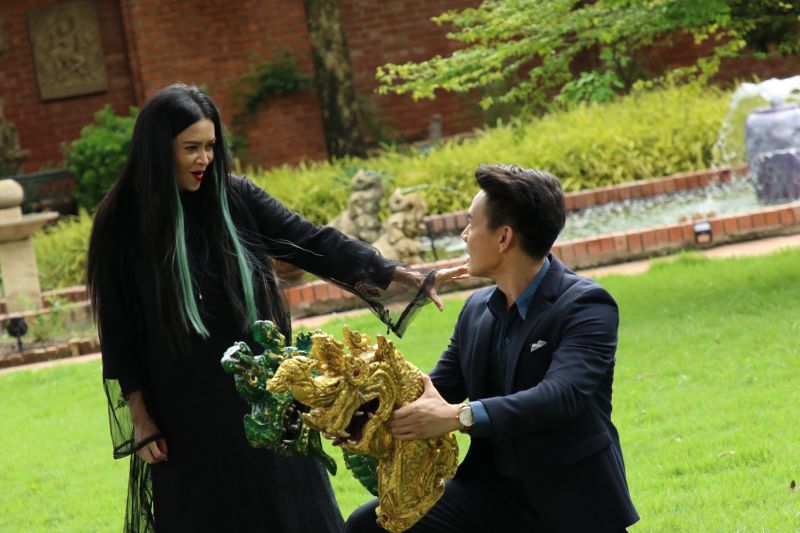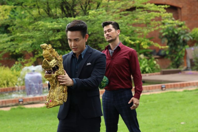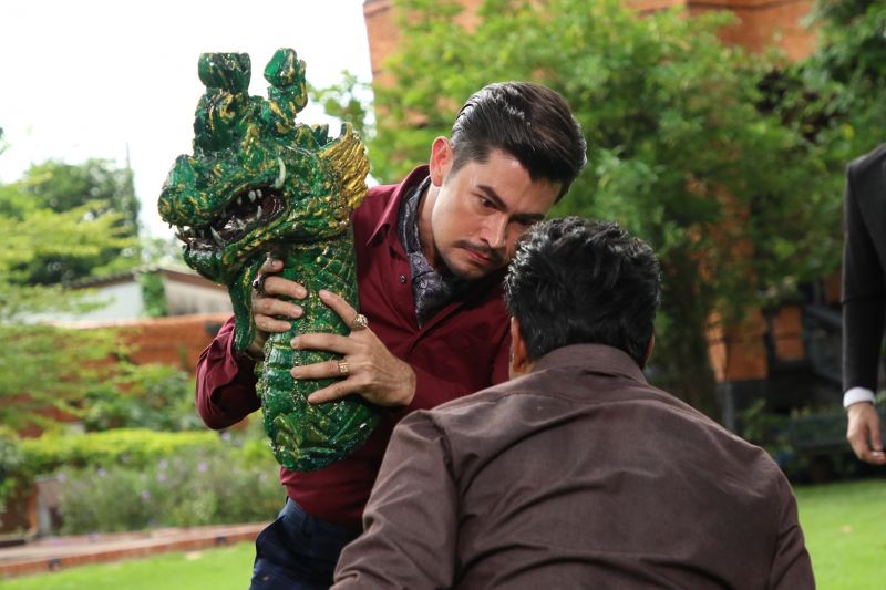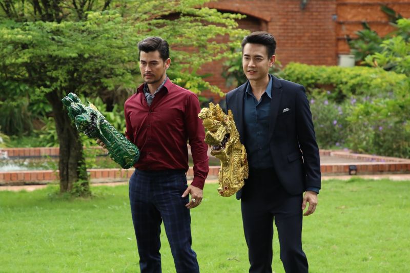 เบื้องหลังฉากนี้ ทีมงานยกกองไปถ่ายทำกันที่บ้านตึกแดงย่าน ลาดพร้าว ซึ่งเป็นฉากที่ หนุ่ม ๆ ต้องบู๊ชิงเศียรนาคกันอีกเช่นเคย โดยมีแกนนำที่ยืนหนึ่งเรื่องชิงเศียรนาค อย่างเต๋า นำทีม บวกกับ อ้น บอย ฟลุค และพี่สาวคนสวย อย่างปูร่วมฉากด้วย พูดเลยว่าขนนักแสดงมาแน่นจอ งานนี้เต๋าที่ต้องออกโรงบู๊กับทุกคน เห็นชุดที่ทุกคนใส่เข้าฉาก แล้วบอกว่าพี่เห็นแล้ว ร้อนแทน เพราะแต่ละคนทั้ง อ้น บอย ฟลุค แต่งเต็มมาก แบบไม่แคร์สภาพอากาศเมืองไทย แต่เดี๋ยวก่อน ตัดภาพไปที่พี่สาวคนสวยอย่างปู ที่งานนี้ถึงกับพูดกับเต๋าว่า แซวคนอื่นจนพี่เขินเลยเพราะชุดพี่ ยิ่งกว่าน้อง ๆ เค้าอีกนะ ทั้งกระโปรง ผ้าคลุม สุดกรุยกราย ที่ถ้าเห็นเป็นต้องนึกถึงอากาศที่ติดลบ แน่นอน ฮ่า ๆ หลังจากที่ นักแสดงทุกคนซ้อมคิวบู๊ ทวนบล็อกกิ้ง กันเรียบร้อยถ่ายจริงเริ่มที่ เต๋าบุกมาที่บ้านของอ้น แต่โดนบอยเล่นงาน อ่วม เต๋าสู้สุดใจทั้งออกหมัดฟาดเตะ แต่เหมือนจะเสียท่า อ้นยิ้มเหี้ยมกะจัดการเต๋าให้เด็ดขาด ฟลุคที่เดินมาด้านข้าง ถือเศียรนาคมาและเดินไปอยู่ข้าง ๆ อ้น เต๋าโกรธมากที่ฟลุคหักหลัง ฟลุคไม่รอช้าปล่อยพลังเศียรนาคใส่เต๋าจนลงไปกอง อ้นได้ทีกะปิดจ๊อบ ปล่อยพลังเศียรนาคใส่เต๋า แต่ได้ปูมาช่วยเบลกพลังเอาไว้ ทั้งอ้น และ ฟลุค โดนพลังตีกลับ ล้มลงไปกอง ปูได้ทีชิงเศียรนาคทั้งสอง และว๊าบหายตัวไป เรื่องราวจะเป็นอย่างไรต่อไป ติดตามฉากสุดมันส์นี้ได้ในวันพุธที่ 16 ธันวาคม เวลา 19.00 น. ทางช่อง8 กดเลข 27ห้ามพลาด!