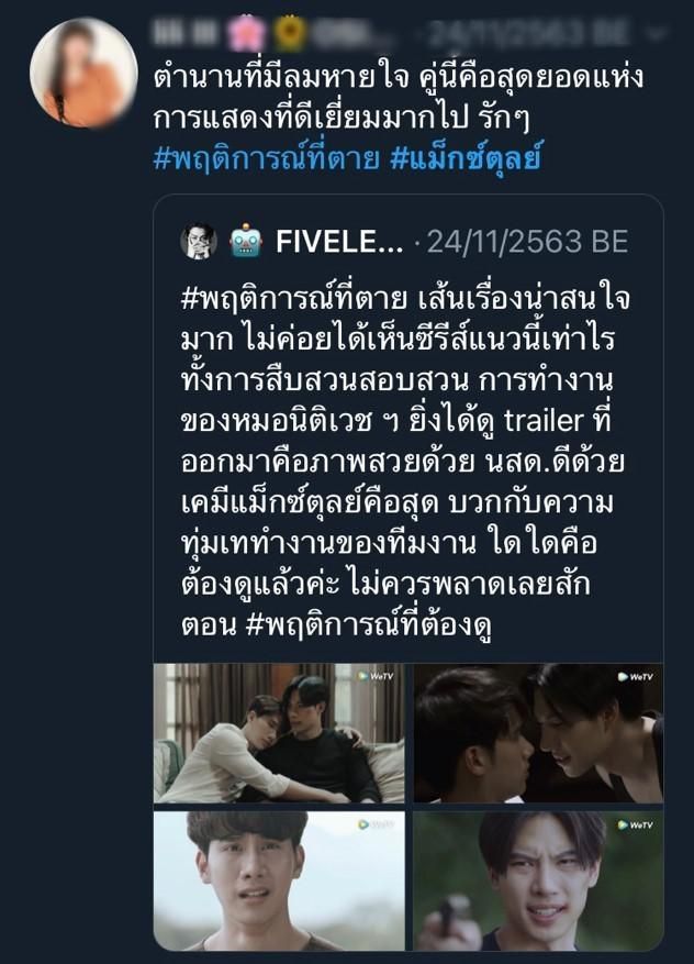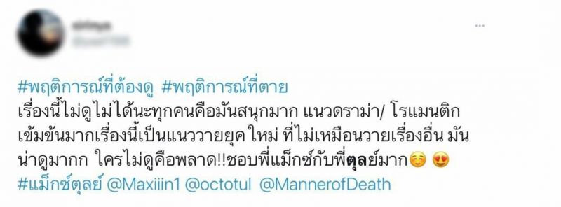 ผู้ชมสามารถพิสูจน์บทบาทของ “แม็กซ์-ตุลย์”ในซีรีส์#พฤติการณ์ที่ตายได้ที่https://bit.ly/WeTVMannerOfDeathรับชมฟรีพร้อมกันทั่วโลก! อัพเดทตอนใหม่ทุกวันจันทร์เวลา20:00 น. ทางWeTV เท่านั้น