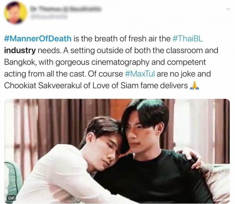 เรียกได้ว่าเป็นการกลับมาที่สมศักดิ์ศรีสมกับตำแหน่งKing of Boys Love ที่แฟนๆต่างชาติยกให้จริงๆสำหรับหนุ่ม “แม็กซ์-ณัฐพล”และ “ตุลย์-ภากร”ด้วยผลงานใหม่แกะกล่องกับซีรีส์วายแนวสืบสวนสอบสวนเรื่องแรกของเมืองไทยอย่าง “พฤติการณ์ที่ตายManner Of Death” ในโปรเจกต์WeTV Original ที่ผู้ให้บริการวิดีโอสตรีมมิงชั้นนำของไทยอย่างWeTV ร่วมกับผู้ผลิตชั้นนำอย่าง “ทีวีธันเดอร์”เปิดตัวขึ้นโดยทั้งสองคนต่างสลัดภาพ “กร-น็อค”จากซีรีส์ภาคต่อทั้ง 3 อย่างBad Romance, Together With Me, และTogether With Me The Next Chapter สู่บทบาทใหม่ “แทน-บรรณ”ติวเตอร์หนุ่มและแพทย์นิติเวชได้อย่างดีจนได้รับคำชมจากแฟนคลับทั่วโลกถึงพัฒนาการที่เห็นได้ชัดของทั้งคู่
