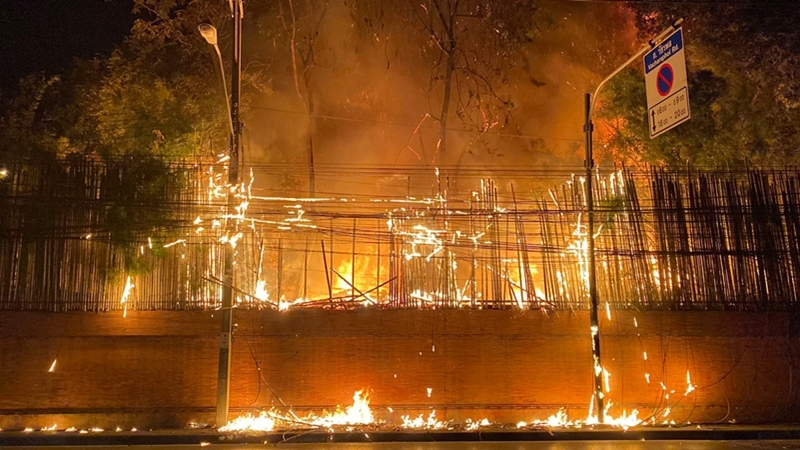 A nun at Sathira Dhammasathan said she heard a crackling sound of the wood going up in flames, and went out of her residence to check.