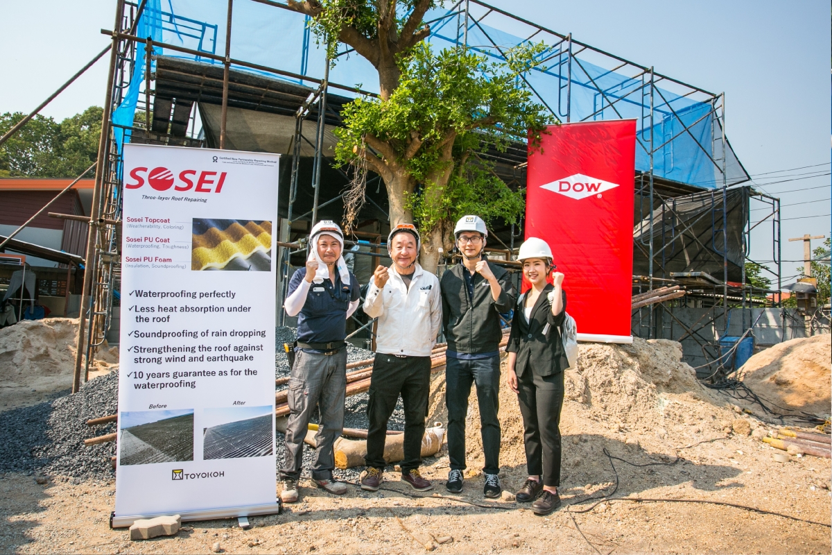 “The “Sosei” roof insulation, which uses Dow’s cutting-edge technology, is eco-friendly and very effective in protecting against heat. Comparing to a normal roof, the temperature under the Sosei roof is approximately 10 degrees Celsius lower. Designed to withstand the humidity climate and being shock-proof and water-proof, it can also lower the impact of natural disasters towards the roof structure, including damages caused by storms and earthquakes, with a 10-year water-proof guarantee. We are proud that Toyokoh is Dow’s first authorized partner to implement this innovation in South East Asia, and we are ready to provide services in Thailand,” said Mr. Kazuaki Toyosawa of Toyokoh.