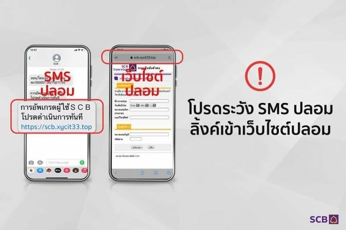 Siam Commercial Bank (SCB) warned the public via a Facebook post on Wednesday to beware of scammers who are now sending an SMS to customers claiming to be from the bank and urging them to update their data.