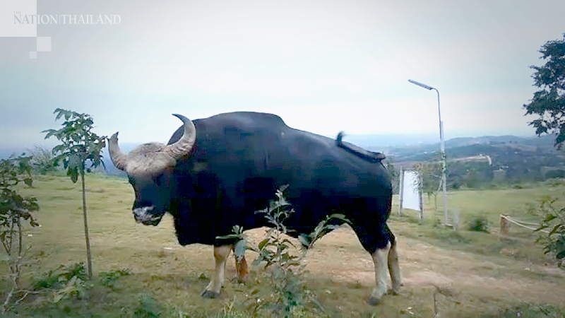 Tourists camping at the Khao Phaeng Ma Reforestation Project in Nakhon Ratchasima’s Wang Nam Kheow district woke up on Wednesday to find a friendly wild bull grazing nearby.