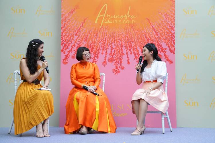 ด้าน “ฟ้า-ฐิติรัตน์ สิริภัทรวณิช” ผู้จัดการฝ่ายบริหารธุรกิจ บริษัท ไอริส โกลด์ จำกัด อธิบายถึงการผลิต “The Sun Collection” ว่า “Iris Gold มีรากฐานของตระกูลที่ค้าทองมานานกว่า 80 ปี ด้วยประสบการณ์ที่ถูกส่งต่อรุ่นสู่รุ่นตามยุคสมัย ทำให้เราคิดค้นสิ่งใหม่ๆ ให้ลูกค้าอยู่เสมอ เพื่อที่จะตอบสนองความต้องการของคนทุกช่วงวัย ทำให้เราต้องเรียนรู้ศึกษา และพัฒนาทุกด้าน ทั้งคุณภาพของสินค้า ไปจนถึงการบริการ และนั่นเป็นหนึ่งในเหตุผลหลัก ที่เราหันมาให้ความสนใจกับ Pink Gold ด้วยสีสันที่สวยทันสมัย มาพร้อมกับงานออกแบบสุดพิเศษจากพี่หน่องที่สามารถใส่ได้ในทุกวัน ที่จะตอบโจทย์การสวมใส่เครื่องประดับทองสำหรับคนยุคใหม่ได้อย่างแน่นอน ในส่วนของ The Sun Collection เป็นคอลเลกชันที่ใช้วัสดุ Pink Gold 9k ประกอบกับอัญมณีสี รวมถึงเพชรด้วย โดยโรงงานที่เราเลือกผลิต เป็นโรงงานที่ผลิตงานให้กับต่างประเทศหลายประเทศ รวมไปถึงประเทศญี่ปุ่นที่เป็นประเทศที่ให้ความสำคัญกับคุณภาพของสินค้าเป็นอย่างมาก ทำให้มั่นใจได้ว่า สินค้าคอลเลกชันนี้ของเรา เป็นงานที่ยอมรับในระดับสากล”
