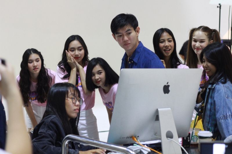 ยิ่งพอได้รู้ว่าจะต้องมาเจอกับพี่ๆ สไตล์ลิส เสื้อผ้า หน้าผม และทีมงานช่างภาพ ที่เป็นทีมงานมืออาชีพระดับท๊อปๆ ของวงการ งานนี้เลยยิ่งเพิ่มความลุ้นระทึก และสร้างความประหม่าให้กับทั้ง 55 สาว อย่างหนัก ริ่มตั้งแต่การแต่งหน้า ทำผม และโพสท่ากันเลย แต่ก็พยายามหาวิธีต่างๆ นานา เพื่อลดความตื่นเต้นและละลายพฤติกรรมระหว่างรอ ด้วยการรวมแก๊งค์ถ่ายเซลฟี่ ถ่ายคลิป TikToK วิ่งเล่นไปมา บ้างก็ซ้อมร้อง ซ้อมเต้น
