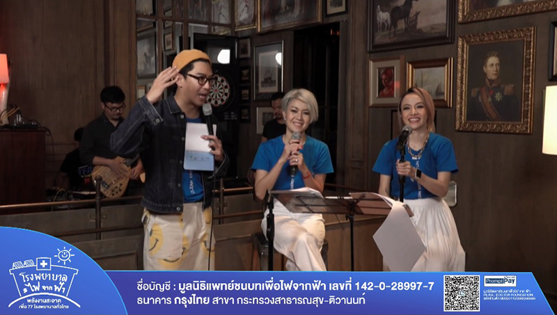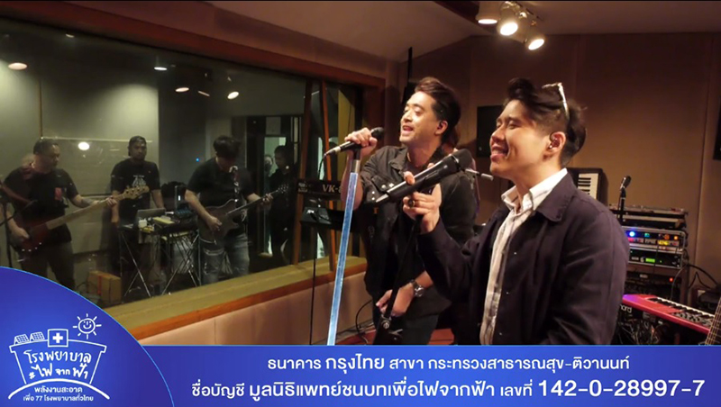 พร้อมจัดกิจกรรม “GMM BEST SINGER LIVE FROM HOME” LIVE รวมน้ำใจ เพื่อโรงพยาบาล ไฟ จาก ฟ้าซึ่งเป็นการสื่อสารเพื่อการมีส่วนร่วมในการติดตั้ง SOLAR ROOFTOP ระบบผลิตไฟฟ้าจากพลังงานแสงอาทิตย์บนหลังคาโรงพยาบาลชุมชนซึ่งต้นทุนสำหรับการติดตั้งกำลังผลิต 100 กิโลวัตต์ ใช้งบไม่เกิน4 ล้านบาทต่อ 1 โรงพยาบาล สามารถช่วยลดภาระค่าไฟฟ้าในระบบปกติเดือนละประมาณ 60,000 บาท โดยระยะเวลา1 ปี จะสามารถลดภาระค่าไฟฟ้าได้ประมาณ 720,000 บาท โซลาร์เซลล์มีอายุการใช้งาน 25 ปี โรงพยาบาลจะสามารถลดภาระค่าไฟฟ้าไปได้ประมาณ 18 ล้านบาท ทำให้แต่ละโรงพยาบาลนำส่วนต่างค่าใช้จ่ายไฟฟ้าที่ลดได้ มาใช้ในการจัดหาอุปกรณ์ และเวชภัณฑ์ทางการแพทย์เพื่อช่วยเหลือประชาชนได้เพิ่มขึ้น