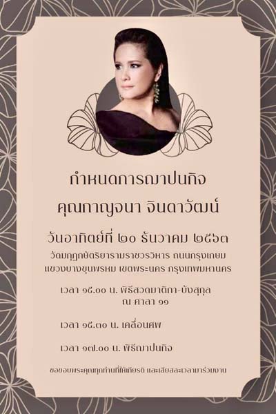 สำหรับพิธีฌาปนกิจ อ้อย-กาญจนา จินดาวัฒน์