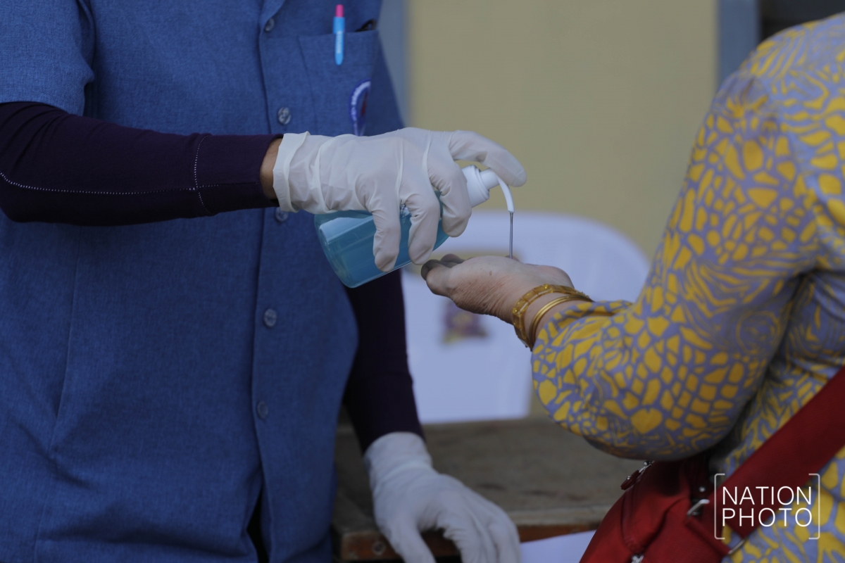 People who arrive at the voting locations have to wear face masks and be screened for body temperature before entering the voting centre.