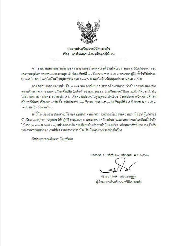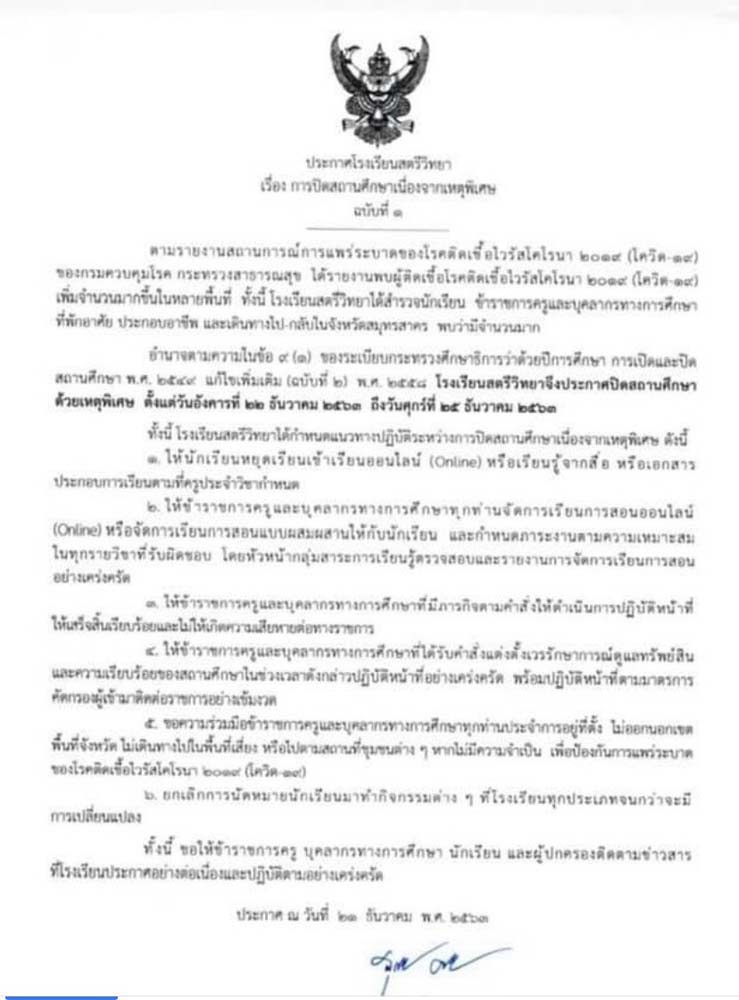 ล่าสุด 3 โรงเรียนอย่าง โรงเรียนศึกษานารี โรงเรียนสตรีวิทยา โรงเรียนวินิตบางแก้ว ได้ประกาศปิดโรงเรียน ดังนี้