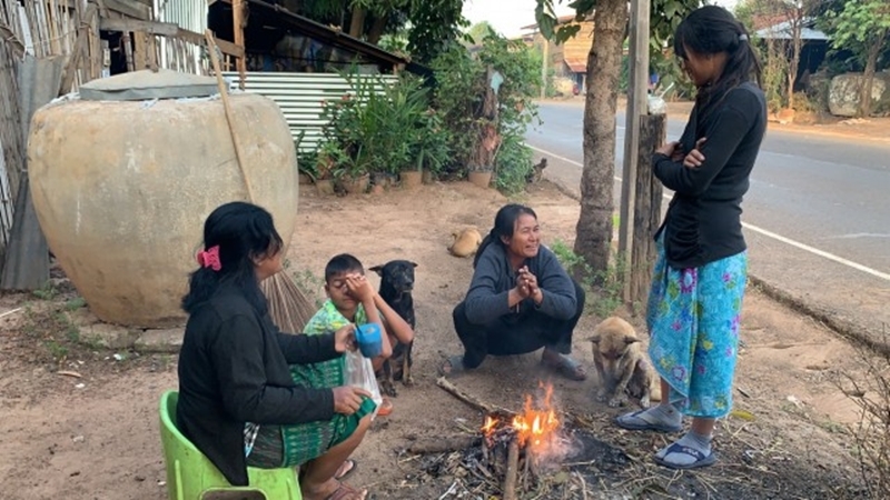 Campfires keep burning to warm villagers as temperatures drop in Si Sa Ket