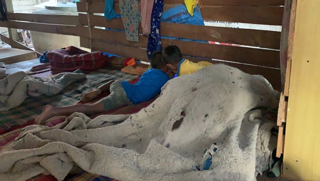 Residents of Ban Tum village in Si Rattana district are suffering the most because they are too poor to afford warm clothes.