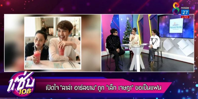 มีข่าว ดาราหนุ่มขาวโบ๊ะ เทแฟนชะนี หันไปกิ๊กหนุ่มหน้าใสแถมคนเห็นเช็คอินที่เดียวกัน งานนี้ก็ทำเอาแฟนสาวเนื้อเต้นเพราะชาวเนตฟันธง เป็น หนุ่มเล็ก เจษฎาเพื่อนชายคนสนิทของลาล่า อาร์สยาม ที่ก่อนหน้านี้ก็มีข่าวว่าลาล่าโดนหนุ่มเล็กตีตัวออกห่างเพราะธุรกิจไม่ปัง จน “อกหัก” ต้องหนีไปบวช ในช่วงเวลาเดียวกันพอดีเป๊ะ! งานนี้เห็นท่านักร้องนักแสดงสาวอย่าง “ลาล่า อาร์สยาม” มีหรือจะยอม ต้องวิ่งออกมาขอแก้ข่าว ในรายการบันเทิง “แซ่บ 108” ทางช่อง 8 ที่พี่พชร์ อานนท์ กับ “เอิ๊ก พรหมพร” รอเปิดห้องรับแขกรอเลยจ้า