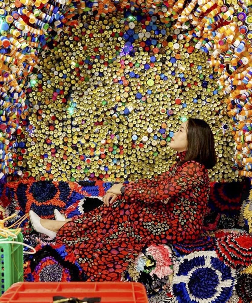 “The artist places grandiose articles, all of which are made of waste materials, such as a functional sofa, table, ceiling lamps and hanging sculptures inside the space with the intention that viewers can have a pleasant time in this invented living room,” the press statement said.