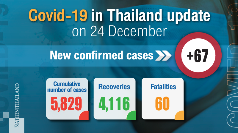 The Centre for Covid-19 Situation Administration on Thursday (CCSA) reported 67 new cases – 58 domestic ones – over a 24-hour period, while spokesman Dr Taweesin Visanuyothin confirmed that there would not be a lockdown across the country for now.