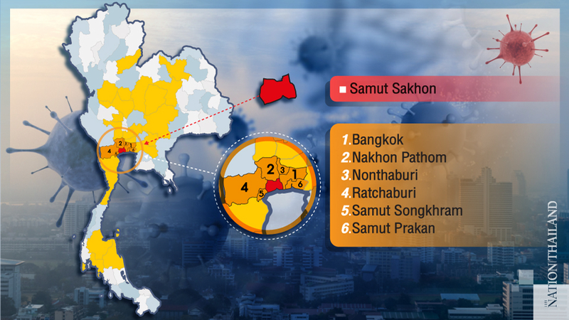 As of Friday, of the 32 provinces where Covid-19 cases have been confirmed, the only one marked in red was Samut Sakhon.