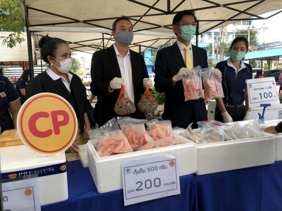 The Fisheries Department said it has joined hands with Charoen Pokphand Foods (CPF) to distribute produce such as steamed blue crab, banana shrimp, boiled shrimp, giant freshwater prawn, mantis shrimp, king mackerel, snapper, catfish under the “Thai aquaculture standards to combat Covid-19” campaign.