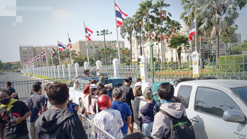 The leader of pro-democracy “We Volunteer” group, Piyarat Chongthep, on Saturday decided to sell a tonne of prawns in front of Government House, in response to a decrease in seafood sales across the nation due to the new Covid-19 crisis in Samut Sakhon province.