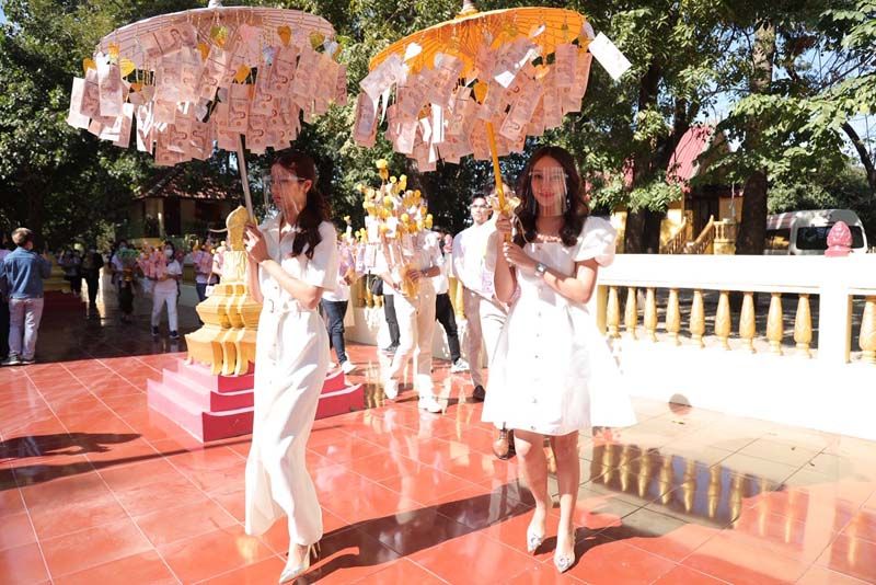 โดยในช่วงเช้าได้ร่วมพิธีทอดผ้าป่า ในวิถีใหม่ตามมาตรการป้องกันการแพร่ระบาดของไวรัสโควิด-19ณ วัดโฉมศรี โดยมีประชาชนในพื้นที่และชุมชนละแวกใกล้เคียงมาร่วมงานซึ่งในปีนี้มียอดเงินร่วมทำบุญจากคณะผู้บริหาร นักแสดง ผู้ประกาศข่าวผู้ผลิตรายการและละคร พนักงาน และหน่วยงานพันธมิตร ร่วมสมทบเป็นกองบุญนี้ จำนวนทั้งสิ้น 854,000 บาท(แปดแสนห้าหมื่นสี่พันบาทถ้วน)