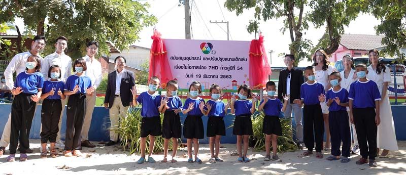 และ ช่อง 7HD ยังได้สนับสนุนปรับภูมิทัศน์บริเวณโดยรอบสนามเด็กเล่นพร้อมตกแต่งห้องสมุดใหม่ รวมมูลค่า 100,000 บาท (หนึ่งแสนบาท)ให้น้องๆ โรงเรียนศรีอุดมวิทยา และได้ส่งมอบอุปกรณ์กีฬา อุปกรณ์การเรียนและอุปกรณ์เสริมทักษะสำหรับเด็กที่พันธมิตรต่างๆ ร่วมนำมาสมทบเนื่องในโอกาส ช่อง 7HD ก้าวสู่ปีที่ 54 แก่ โรงเรียนวัดตุ้มหู และโรงเรียนวัดบางปูน เพื่อสร้างโอกาสพัฒนาการทางการเรียนรู้ เป็นของขวัญปีใหม่ให้กับนักเรียนจากทั้ง 3 โรงเรียน รวมกว่า 600 ชีวิต นอกจากนี้ ยังร่วมเลี้ยงอาหารกลางวันปลูกต้นไม้ และส่งมอบความสุขเรียกเสียงหัวเราะและรอยยิ้มผ่านความบันเทิงจากนักแสดงและศิลปิน วง มินิฮาร์ท จาก บริษัทดราเมจิก มาร่วมสร้างความคึกคักอีกด้วย