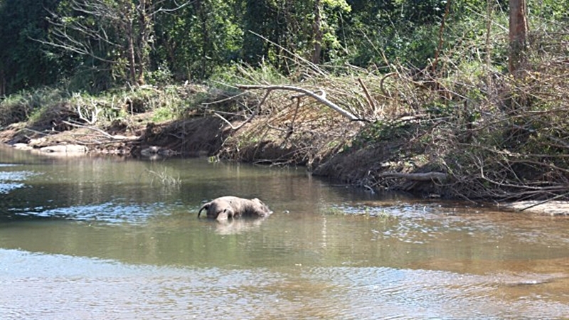 Nakhon Ratchasima locals stumbled across the decaying carcass of a baby elephant lying in a stream in Nakhon Ratchasima’s Thap Lan National Park on Monday.