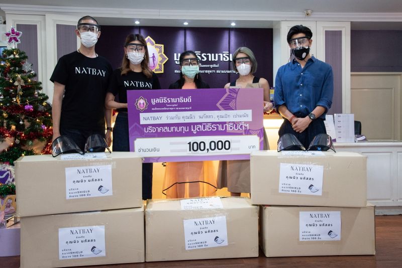 เป็นแซนต้า แซนตี้ ใจดีอีกคู่ ต้องยกให้คู่รัก “นิว-เป๊ก” หรือ “นิว-นภัสสร ภูธรใจ และ “เป๊ก – เปรมณัช สุวรรณานนท์” เพราะล่าสุด เมื่อวันคริสมาสต์ที่ผ่านมา “นิว-เป๊ก” ควงคู่ ร่วมกับ “NATBAYGROUP” นำเงินจากการจัดแคมเปญ“Protecting Yourself & Your Love One”จำหน่ายแว่นและหมวกFace Shied แฟชั่น ไอเทมจำเป็นเพื่อป้องกันโรค จากสถานการณ์ไวรัสโคโรนา โควิด-19 ครั้งก่อน ส่งมอบสมทบทุนให้กับมูลนิธิรามาธิบดีฯ จำนวน 100,000 บาท (หนึ่งแสนบาทถ้วน) พร้อมบริจาค หมวกFace Shieldอีกจำนวน 1,000 ชิ้น เพื่อบุคลากรทางการแพทย์ได้นำไปใช้ประโยชน์ต่อสู้กับไวรัสโควิด-19 รอบใหม่ นี้อีกด้วย