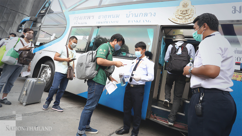 Despite the new wave of Covid-19 infections, many people were seen taking interprovincial buses from Bangkok to their hometowns for the holiday period.