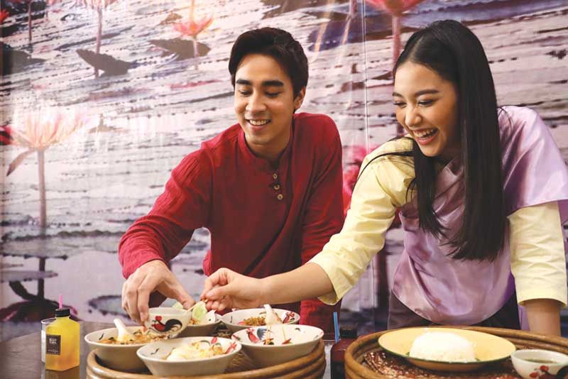 หลังจากสนุกกับทุกกิจกรรม ก็ถึงเวลารับประทานอาหาร มื้อนี้มีอาหารไทยประยุกต์สำรับใหญ่ ทั้งม้าฮ่อ, ยำมะม่วงหาวมะนาวโห่, ข้าวผัดมันกุ้ง, สีดาลุยไฟ หรือ แกงคั่วส้มโอหอยแมลงภู่ ตบด้วยส้มฉุน ของหวานรสชาติสดชื่น บอกเลยว่าเป็นมื้ออร่อยแบบไทยฟิวชั่น แบบฟินๆ ที่ทำให้ทั้งคู่ปลื้มสุดๆ