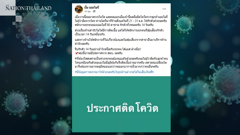 “My Covid-19 test showed positive in the morning and I don’t know which customer spread the virus, so I would like to ask customers who visited the pub from December 21-31 to undergo self-quarantine and monitor their health,” he said.