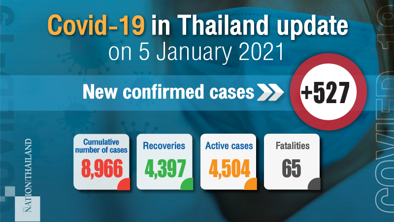 The Centre for Covid-19 Situation Administration (CCSA) announced 527 confirmed cases, including six in quarantine facilities, on Tuesday.