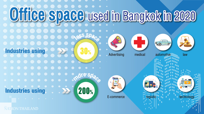 Rungrat Weerapakkaroon, chief of CBRE Thailand’s office space department, said that in 2020, offices in Bangkok had either merged or reduced by up to 30 per cent, mostly in the advertising, automotive, legal and medical sectors.