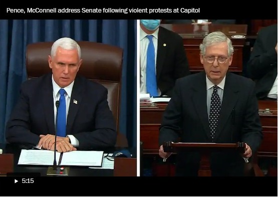 McConnell, who also had said little publicly about the process before Wednesday, likewise delivered a stirring opening floor speech imploring his colleagues not to damage democracy by objecting to the votes.