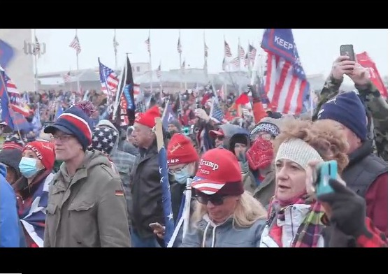 Beneath streaming flags, including some that read “F— Biden” and that depicted Trump as the movie character Rambo, people loudly exhorted Jesus and chanted “USA!”