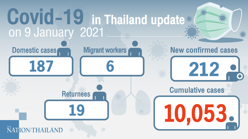 Thailand Covid-19 update: 187 domestic patients among 212 new cases
