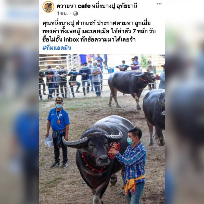 ด้วยความที่ “หนึ่ง บางปู” เป็นคนที่รักควายมากและอยากอนุรักษ์ไว้ให้ลูกหลานดู ล่าสุดประกาศ ตามหาควาย ซี่งเป็นลูกของ “เสี่ยทองคำ” ให้ราคาสูงถึง7หลัก จะมีกี่ตัว รับซื้อไม่อั้น แต่ต้องผ่านการตรวจเลือดก่อนว่า ใช่ควายที่เป็นลูกของ “เสี่ยทองคำ” จริงหรือเปล่า เพราะเคยมีคนมานำเสนอแล้ว แต่ยังไม่ใช่