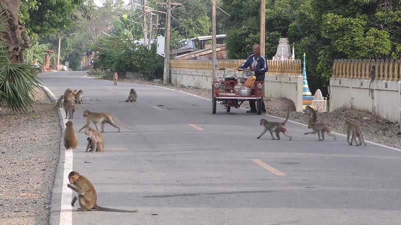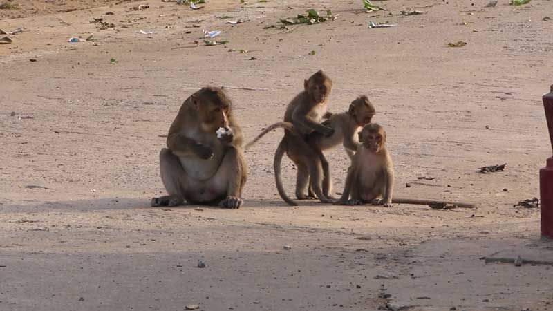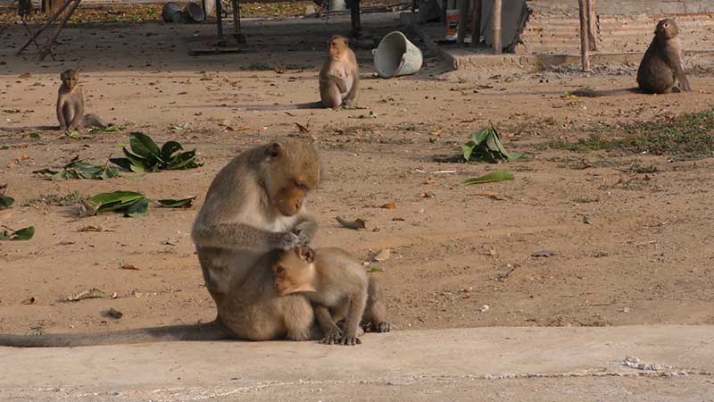 ชัยนาทอุณหภูมิต่ำสุด12องศา ฝูงลิงแสมหนาว ตากแดดรับไออุ่น