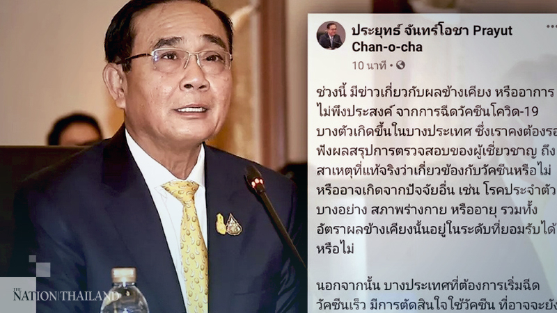 The PM alluded to recent news about side-effects or adverse effects from Covid-19 vaccine in some foreign countries. He said Thailand must wait to hear opinions of experts on whether the symptoms were vaccine-related, or other factors, such as certain medical conditions, physical condition, or age, including whether the rate of side-effects is acceptable?