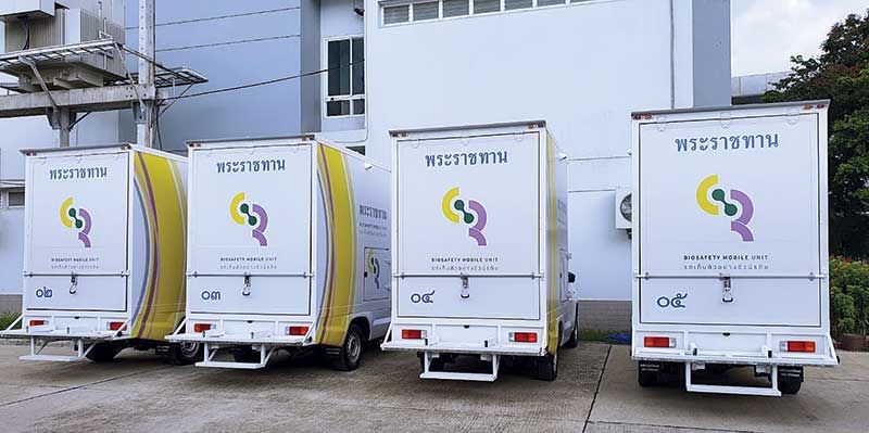 นับตั้งแต่การแพร่ระบาดของเชื้อไวรัสโควิด-19 ต่างนำความทุกข์ยากมาสู่ประชาชนคนไทยทั่วทุกแห่งหนพระบาทสมเด็จพระเจ้าอยู่หัว และสมเด็จพระนางเจ้าฯพระบรมราชินี พระราชทานความห่วงใยและความช่วยเหลือพสกนิกรชาวไทยอย่างต่อเนื่อง โดยเฉพาะการจัดหารถตรวจโรคติดเชื้อชีวนิรภัยจำนวน 20 คัน เพื่อส่งมอบให้แก่ส่วนราชการ นำไปใช้ประโยชน์ เป็นเสมือนหน่วยเคลื่อนที่เร็ว ในการให้บริการตรวจคัดกรองแก่ประชาชนกลุ่มเสี่ยงที่อยู่ในพื้นที่ต่างๆ ให้ได้เข้าถึงกระบวนการคัดกรอง เพื่อทำการแยกตัวผู้ป่วยเข้ารับการรักษาได้อย่างทันท่วงที และนำมารักษาอย่างถูกวิธี ทำให้ผู้ติดเชื้อหายเป็นปกติ อีกทั้ง ไม่เป็นพาหะในการแพร่เชื้อไปยังผู้อื่น ที่สำคัญการตรวจคัดกรองจากรถคันดังกล่าว มีเทคโนโลยีตลอดจนอุปกรณ์ที่ทันสมัย สามารถป้องกันและช่วยลดความเสี่ยงจากการสัมผัสกัน ระหว่างเจ้าหน้าที่ผู้ให้บริการ และประชาชนผู้เข้ารับบริการ เป็นที่ซาบซึ้งในพระเมตตาอย่างหาที่สุดมิได้ โดยเฉพาะการให้บริการในพื้นที่ที่เกิดการแพร่ระบาด อาทิ ตลาดกลางกุ้ง จังหวัดสมุทรสาคร เป็นต้น