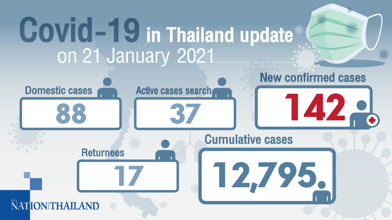 CCSA spokesman Taweesin Visanuyothin, meanwhile, reported the case of a woman in Nakhon Phanom who was infected by a relative with possible links to the Rayong gambling den cluster. Many high-risk contacts linked to this cluster have tested negative, though some 1,000 are being isolated.